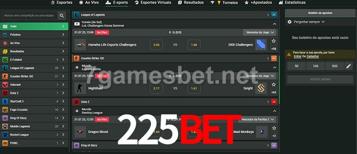 O 225Bet oferece uma grande seleção de opções de apostas em e-sports com probabilidades competitivas